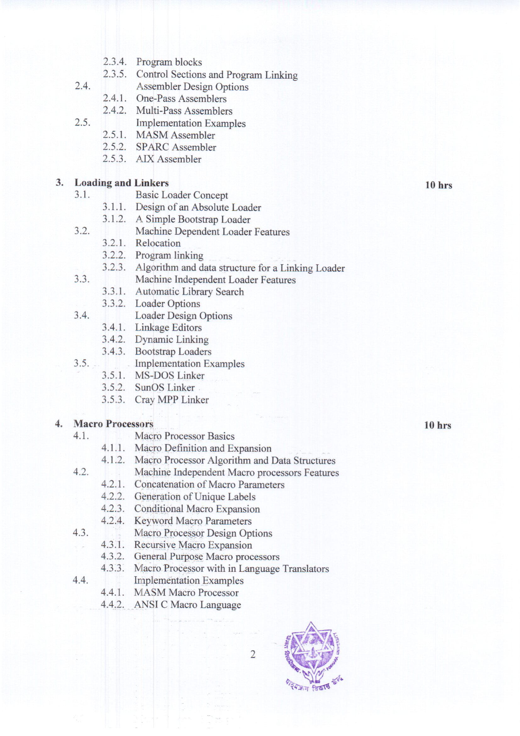 Syllabus of System Programming subject from Pokhara University (PU).