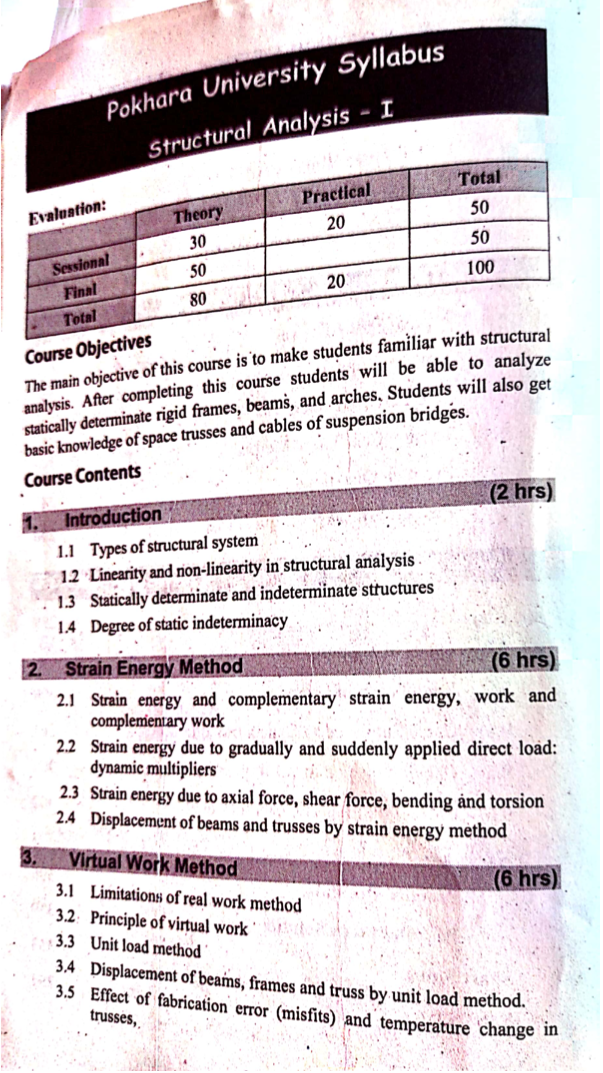 Syllabus of Structural Analysis - I subject from Pokhara University (PU).